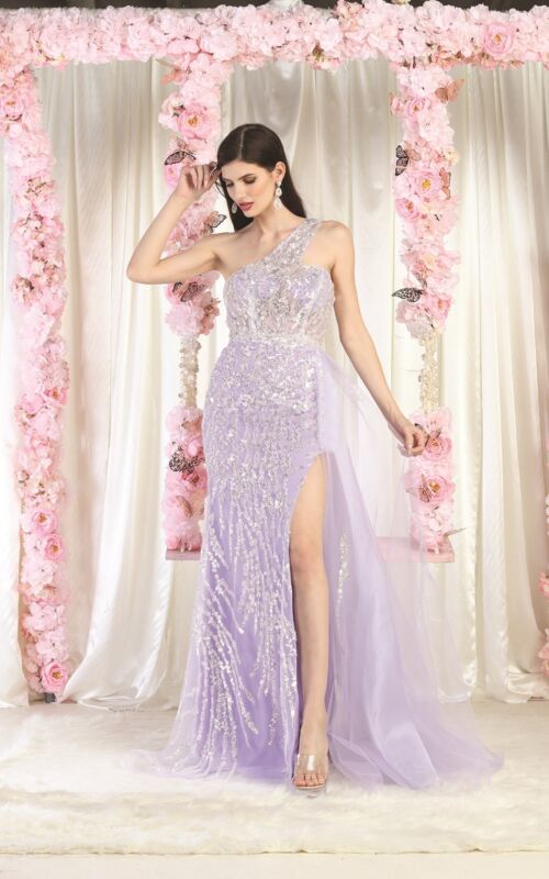 Lilac Shoulder Single Strap Model High Slit Long Dress