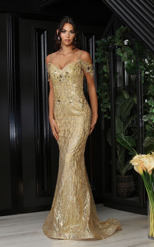 Mermaid Model Prom Dress Specially Embroidered Gold