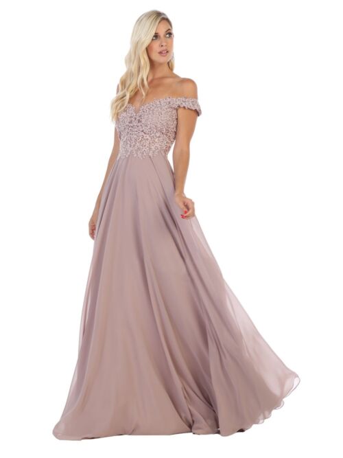 Mauve Strappy Shoulder Classic Long Evening Dress