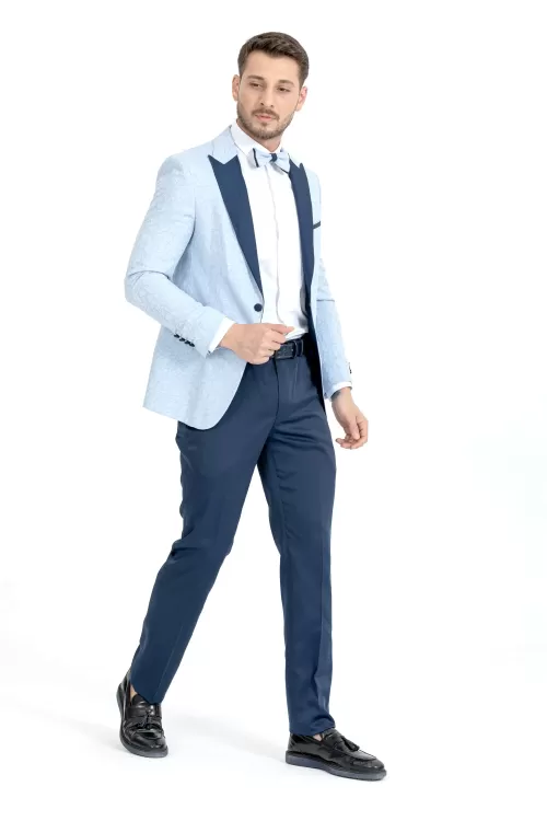 Baby Blue Cracked Patterned Textured Tuxedo Two Piece Set