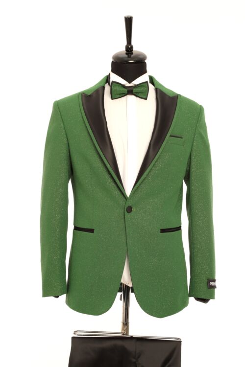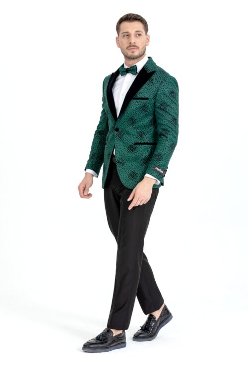 Green Spotted Pattern Silvery Detailed Two Piece Tuxedo