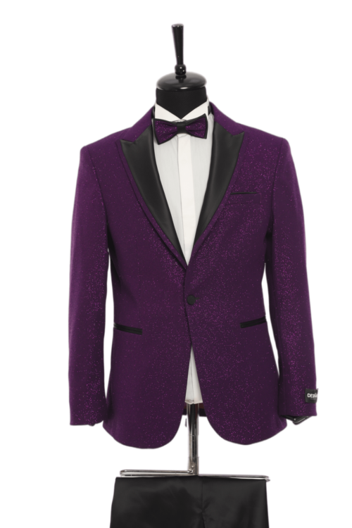 Purple Pointed Collar Silvery Classic 2 Piece Tuxedo