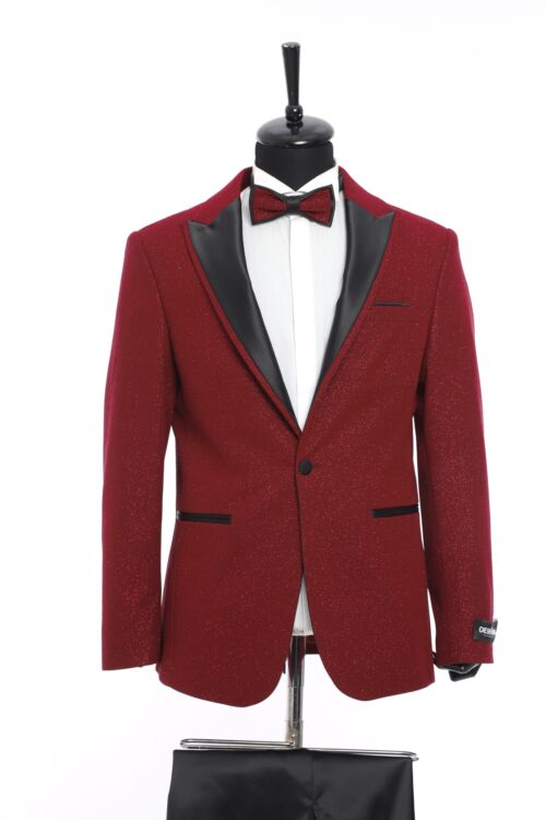 Red Pointed Collar Silvery Classic 2 Piece Tuxedo