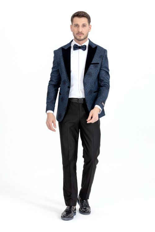 Navy Spotted Pattern Silvery Detailed Two Piece Tuxedo
