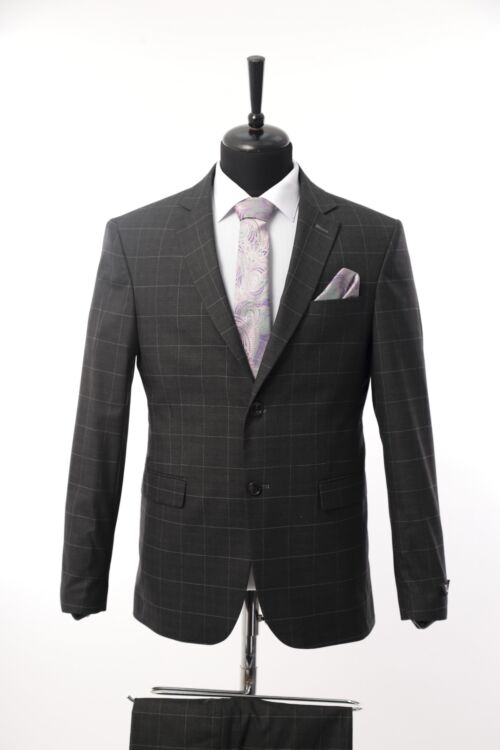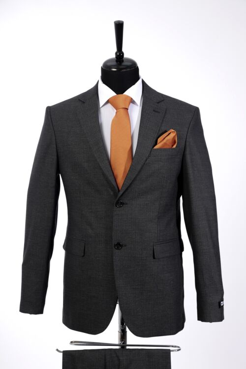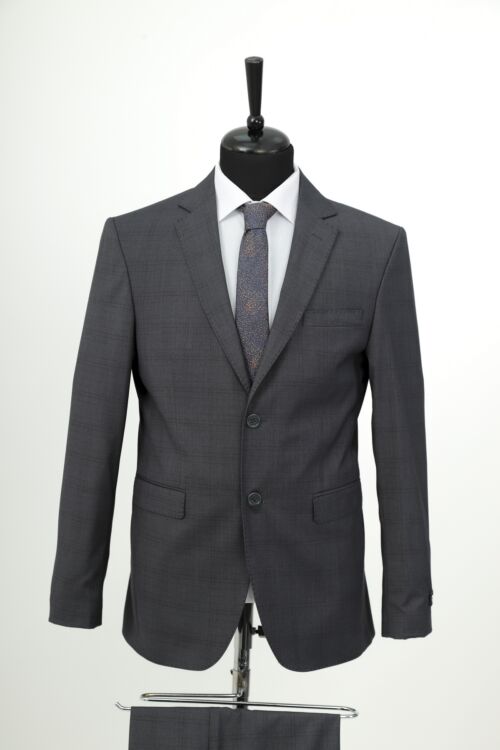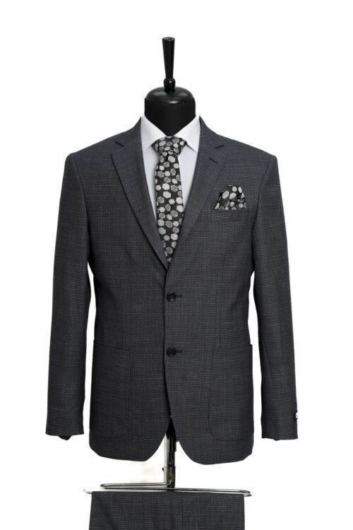 Dark Grey Patterned Wool Fabric Two Piece Suit