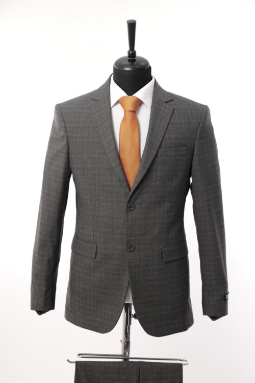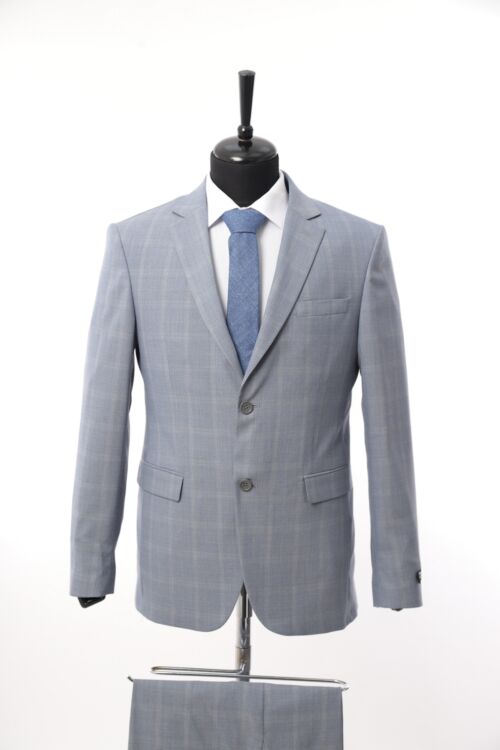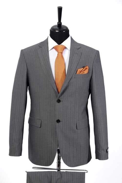 Grey Wool Fabric Two Piece Suit with Navy Line Detail