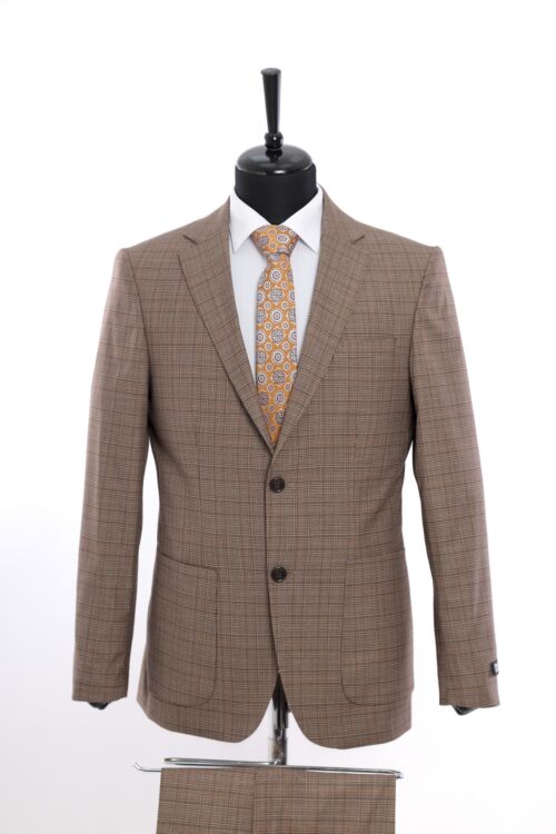Cream Patterned Wool Fabric Two Piece Classic Suit