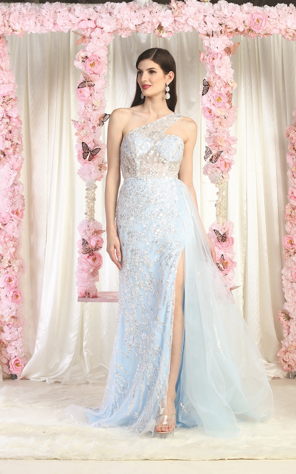 Baby Blue Shoulder Single Strap Model High Slit Long Dress