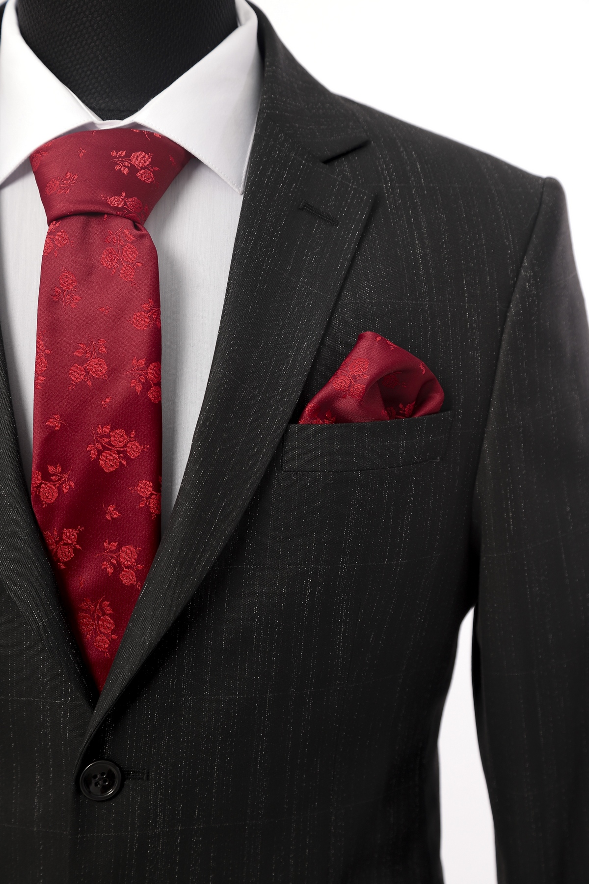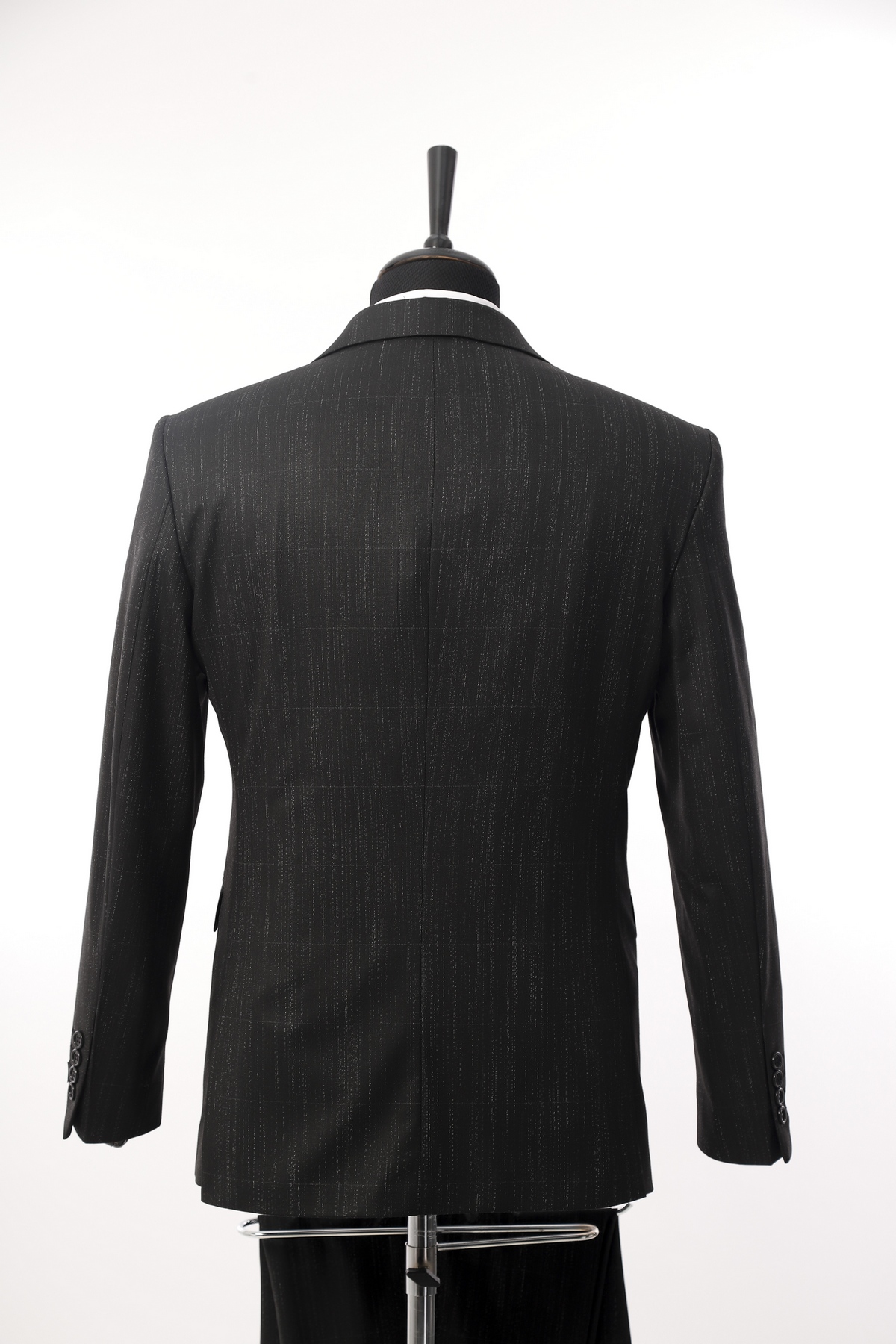 Black Patterned Wool Fabric Two Piece Suit