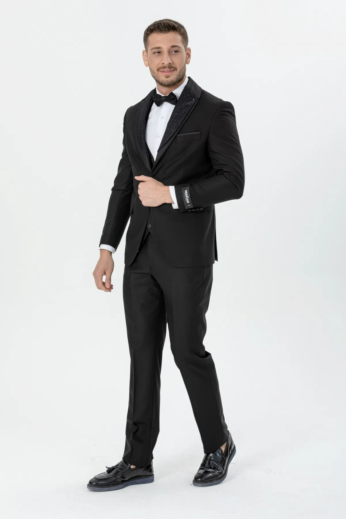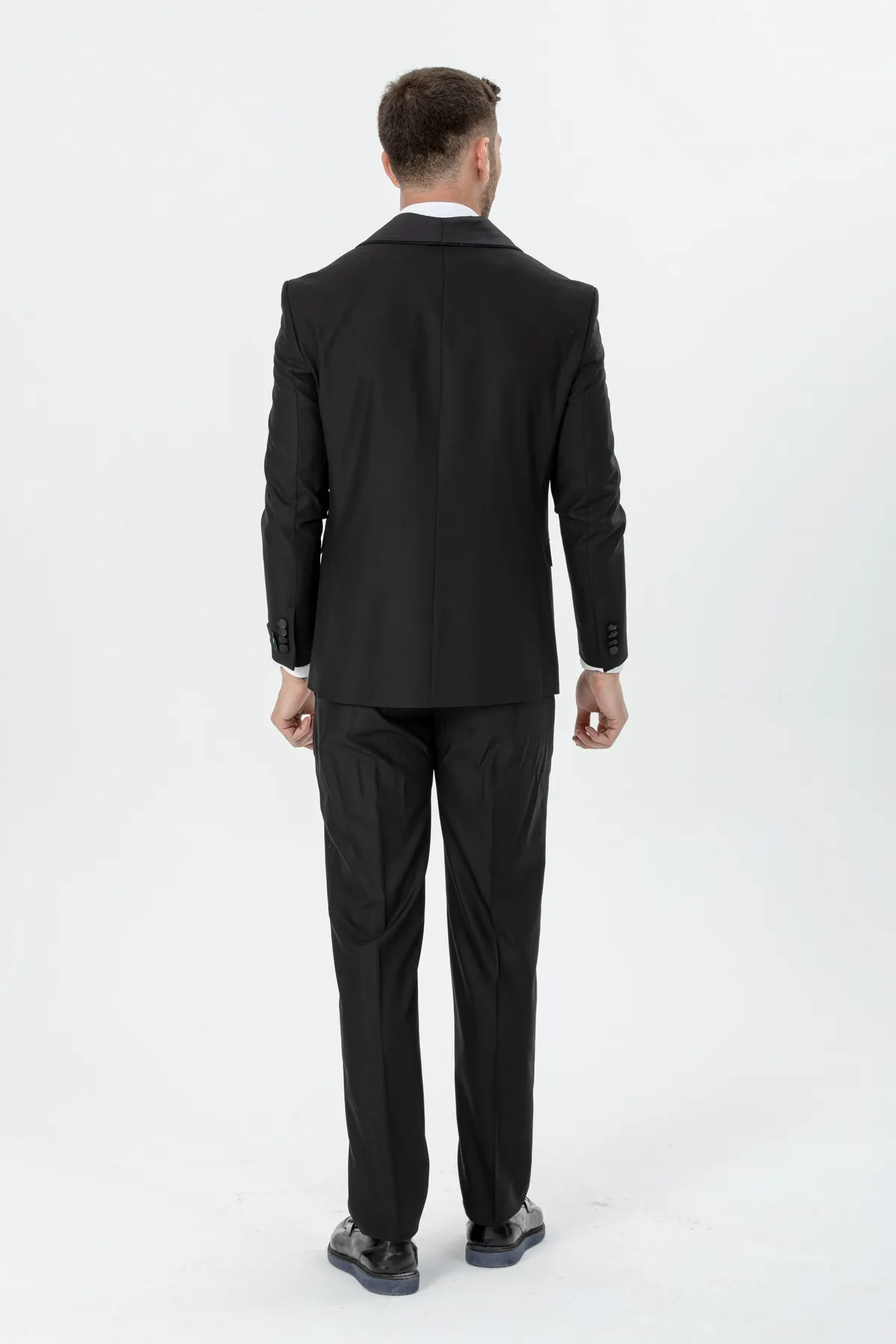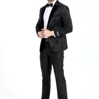 Black Silvery Collar Luxury Tuxedo Three Piece Set