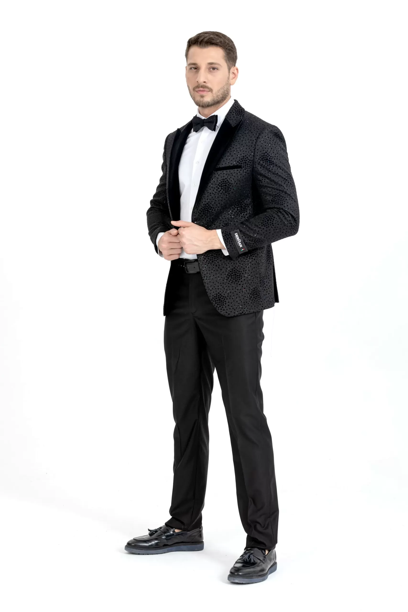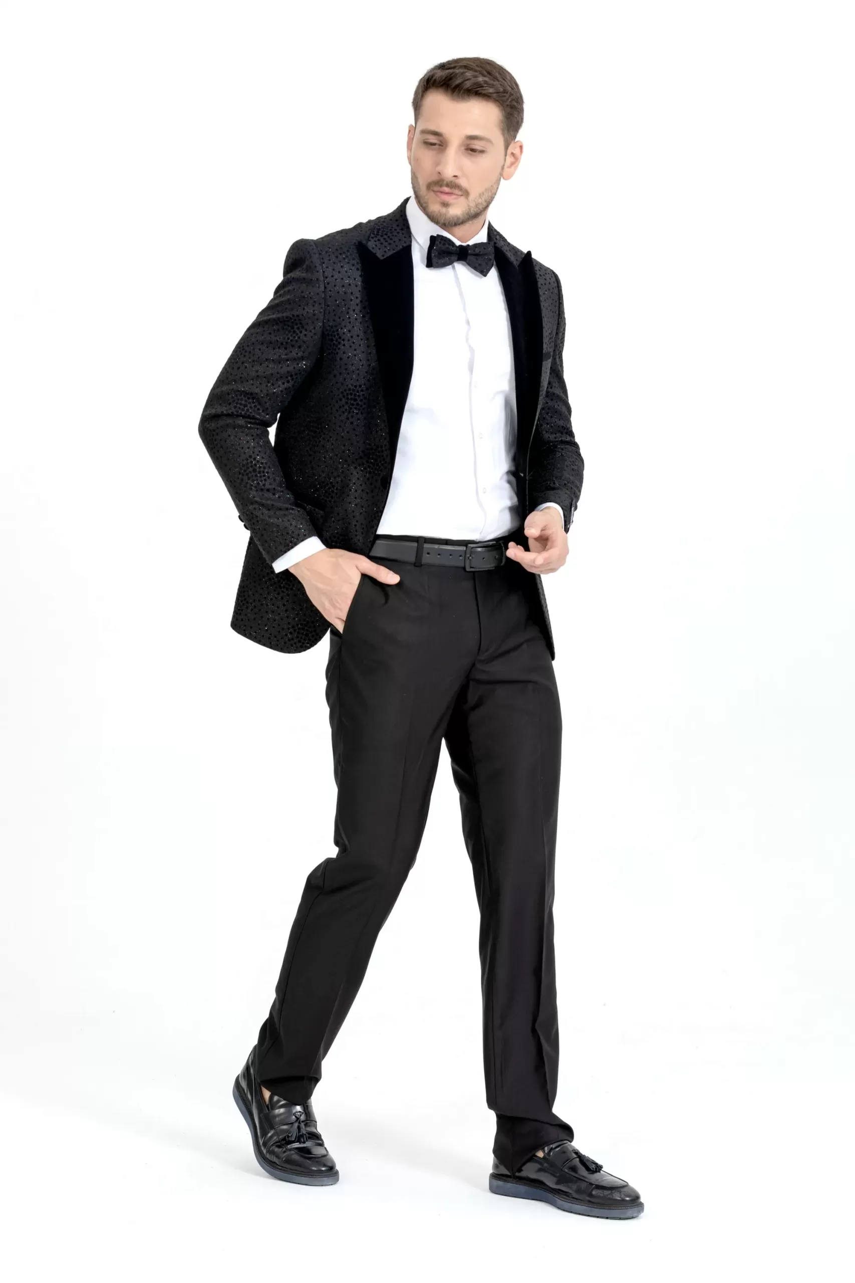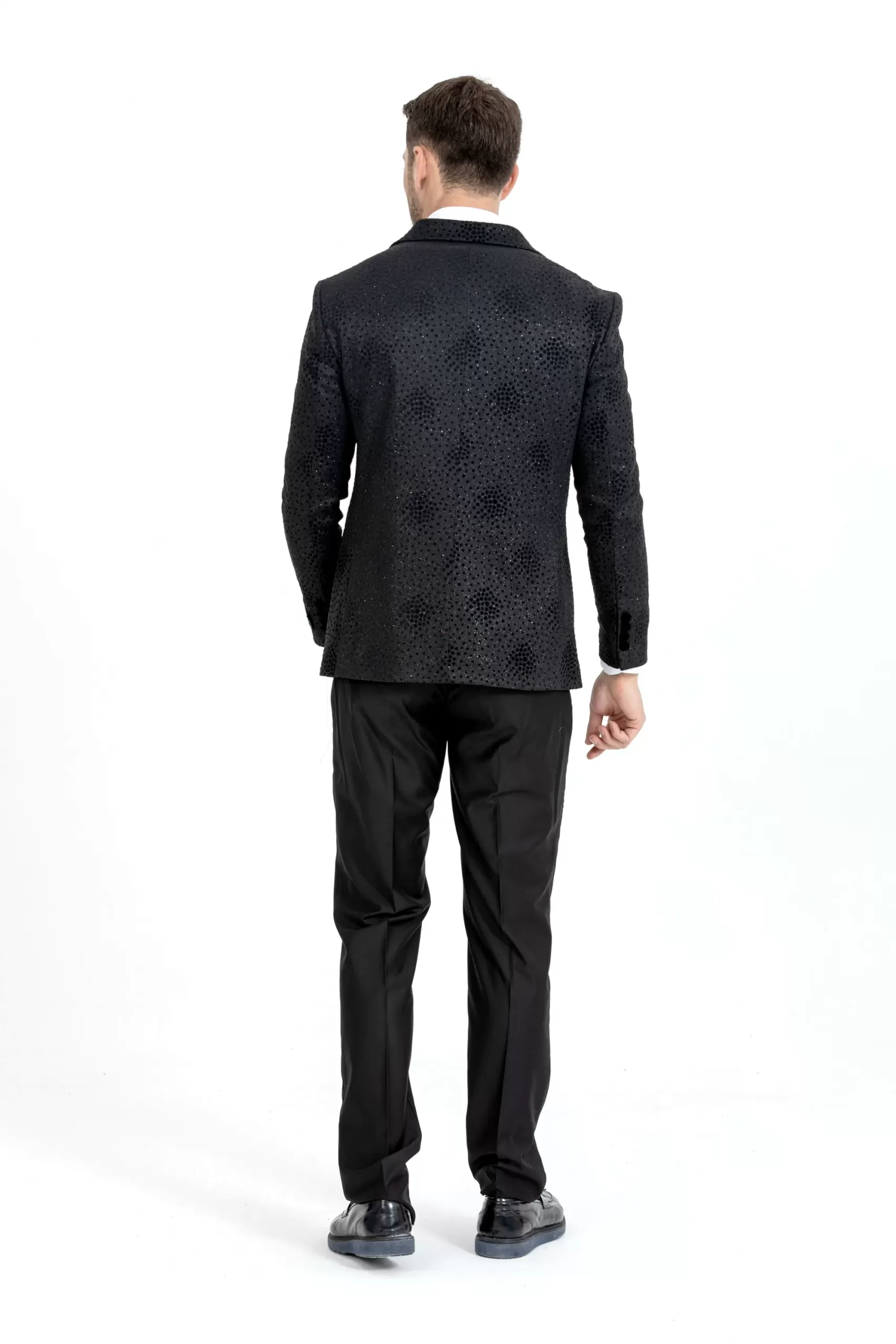 Black Spotted Pattern Silvery Detailed Two Piece Tuxedo