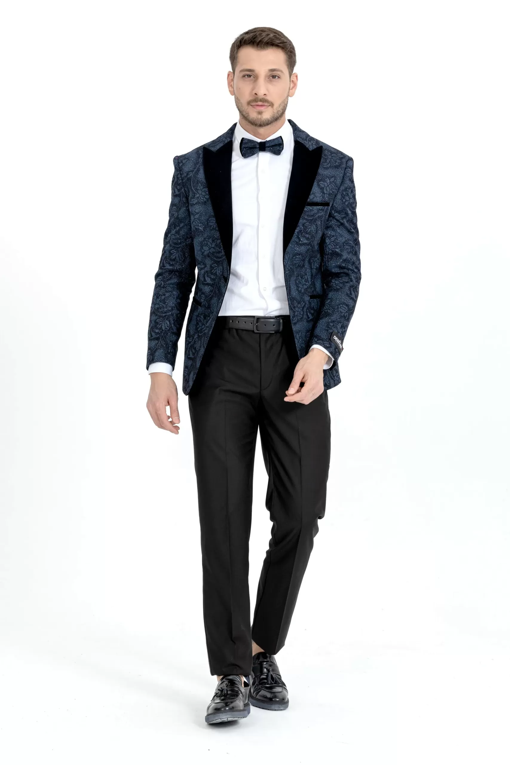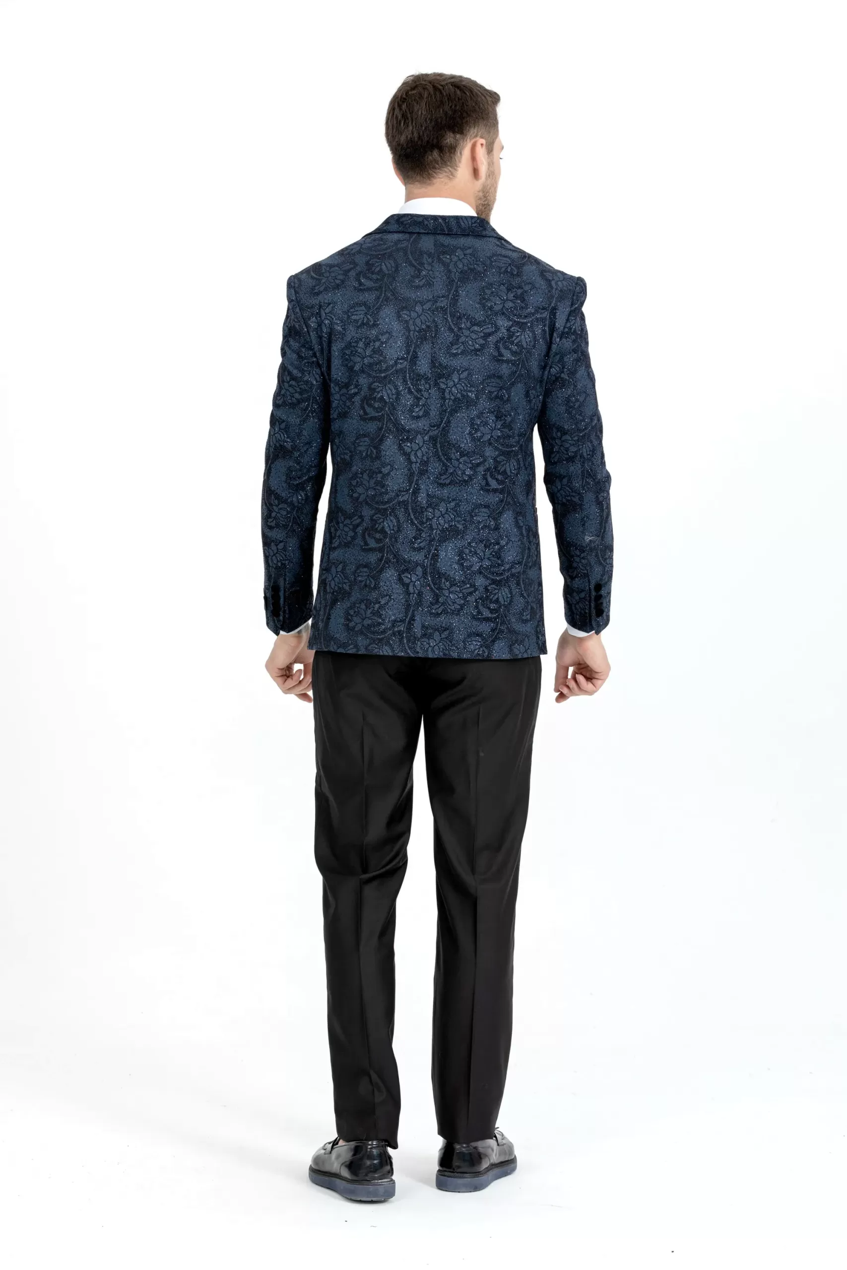 Blue Floral Patterned Silvery Tuxedo Two Piece Set