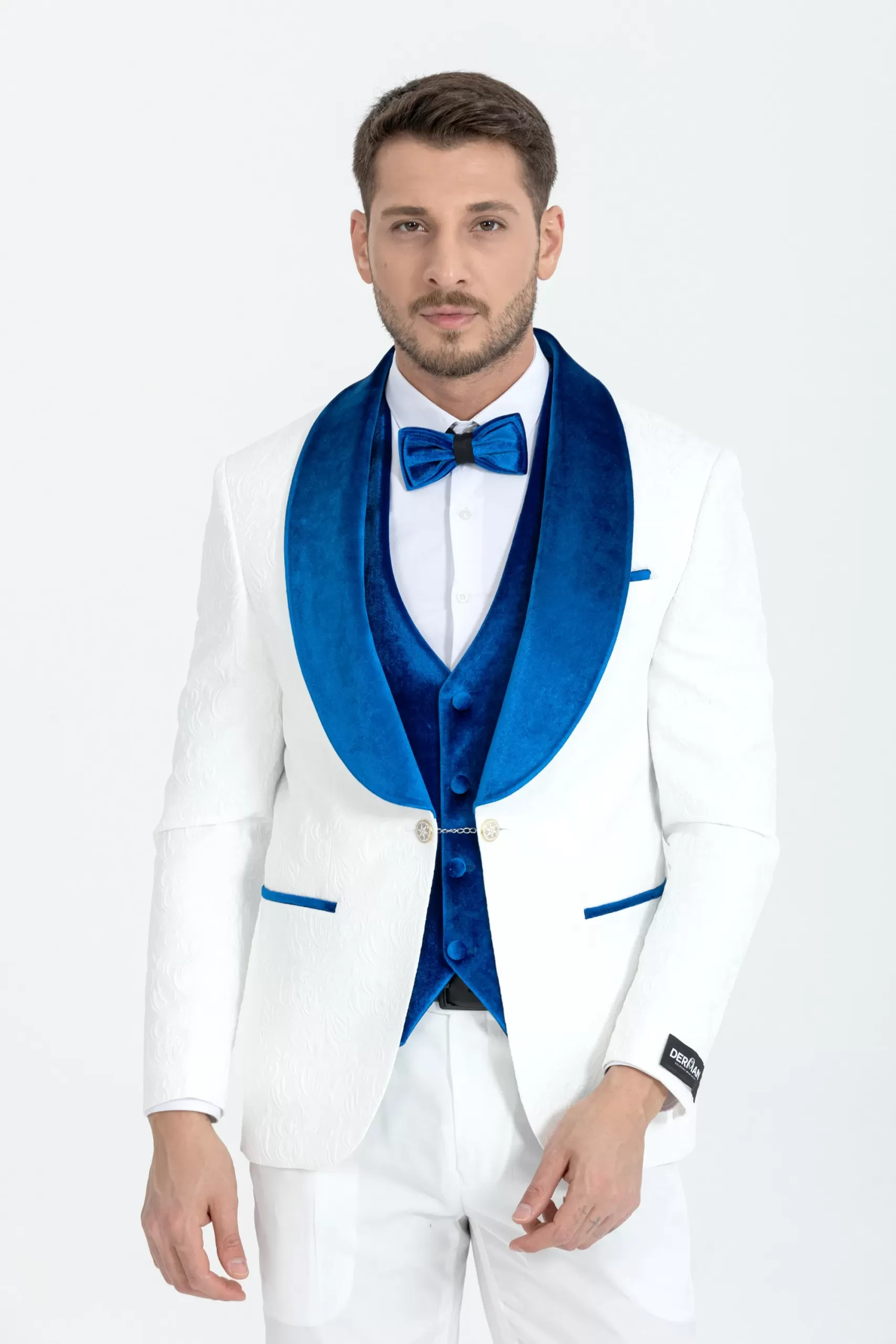 GOLD LUXURY FLORAL TEXTURED VELVET COLLAR 3 PIECE TUXEDOWant a suit that works as hard as you do? Take a detailed look at our product, a tuxedo that you can dress up or simplify. This is what we call subtle style that will fit any occasion. Whether it’s a wedding, a business event or a party, this is what we like to call versatile. Our groom collection is with you with special inner lining colors.