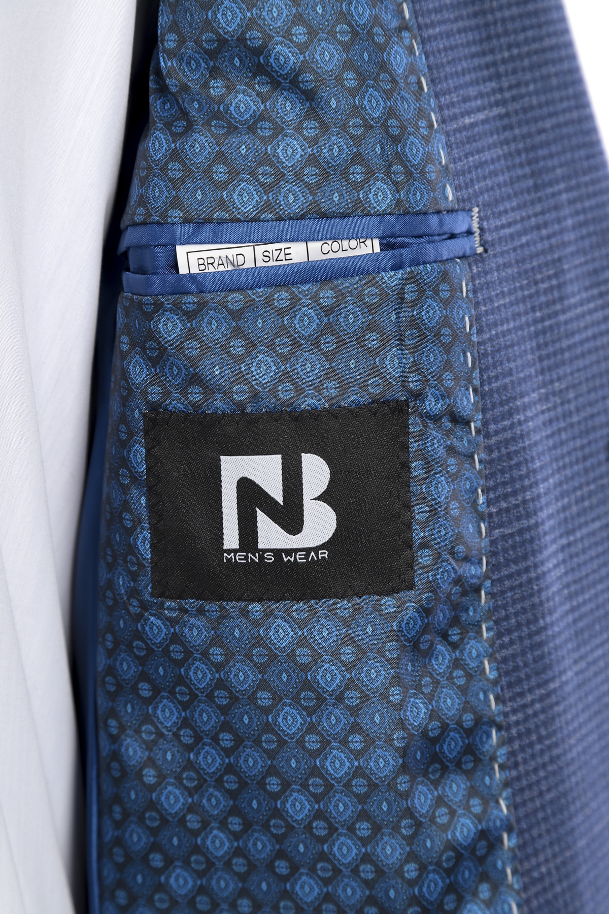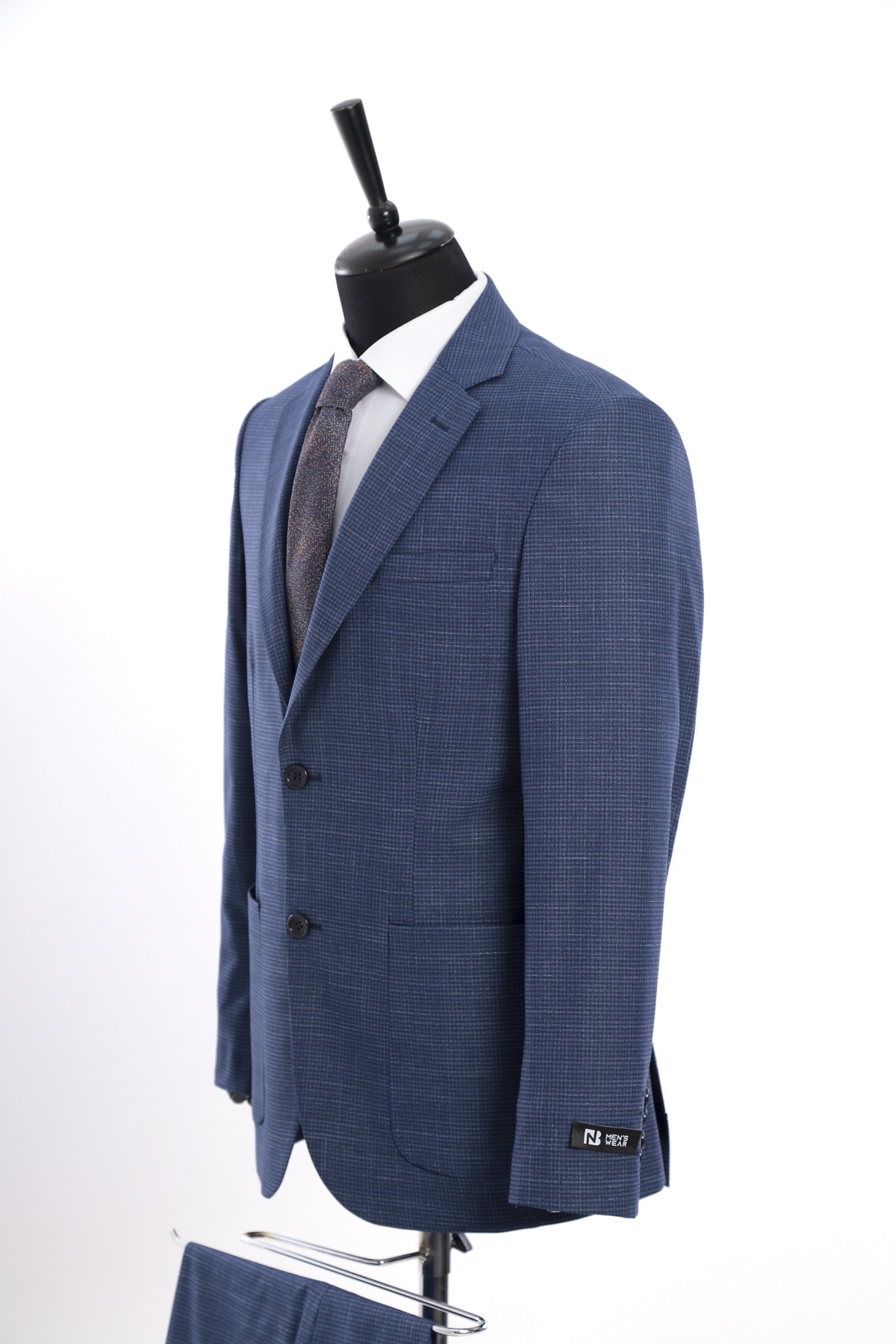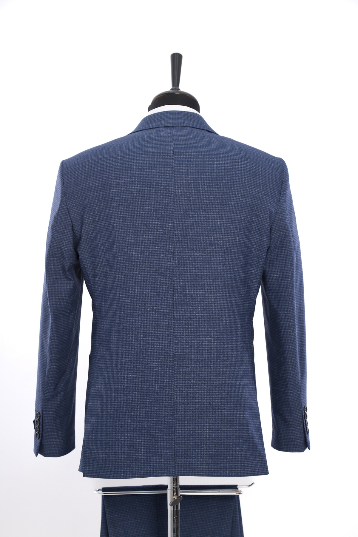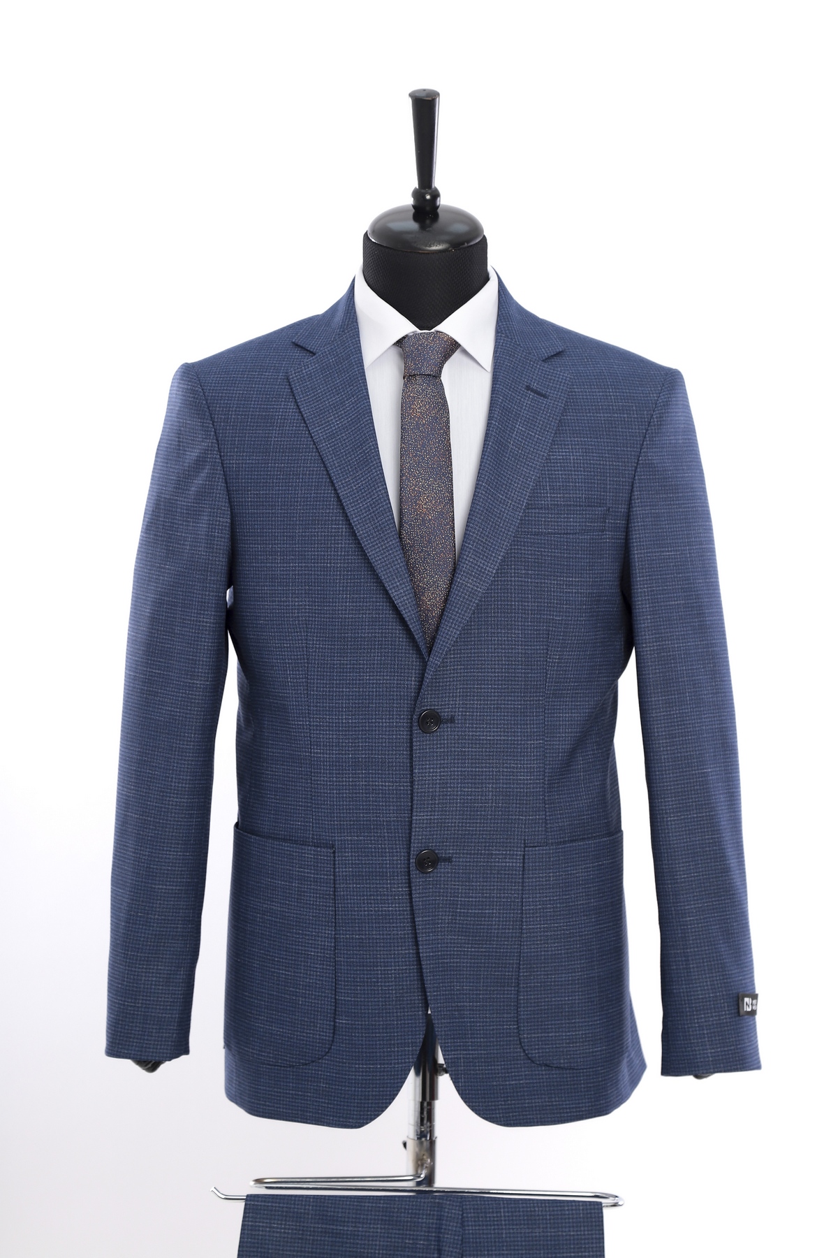 Blue Patterned Wool Fabric Two Piece Classic Suit