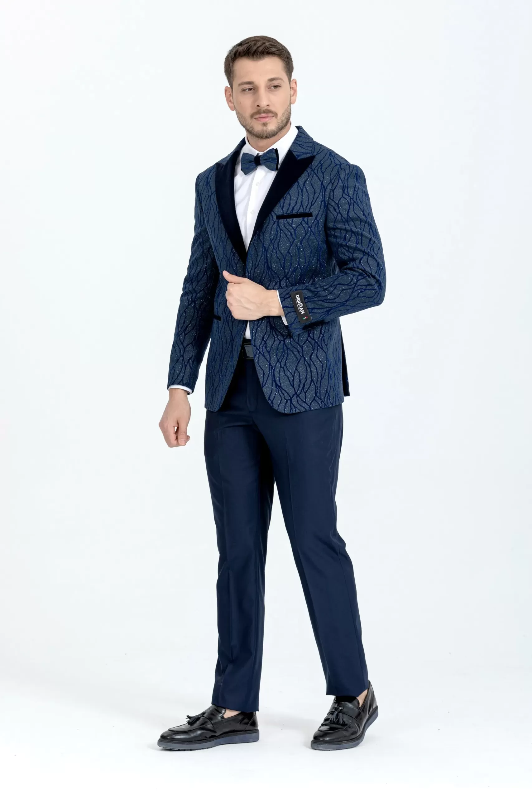 Blue Silvery Patterned Fabric Tuxedo Two Piece Set