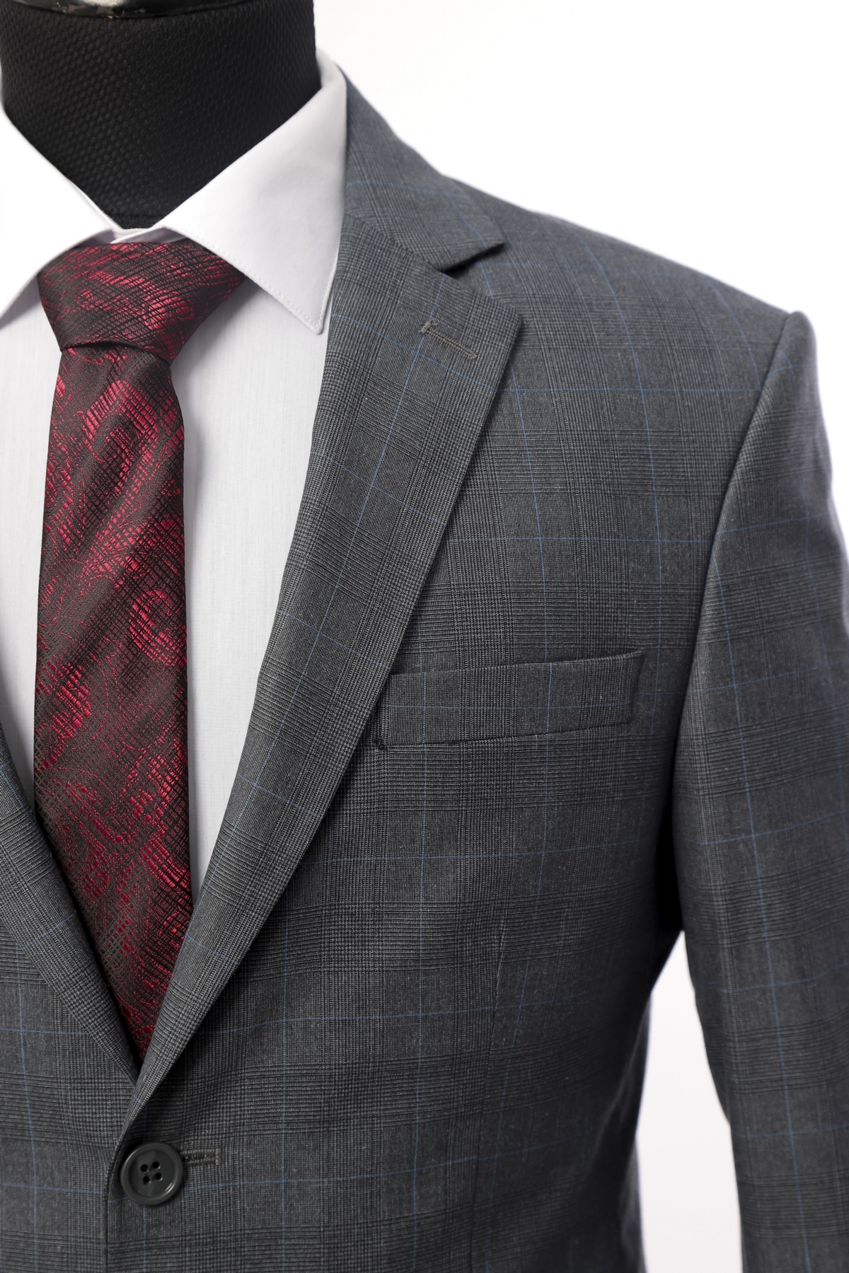Dark Grey Patterned Wool Fabric Two Piece Suit