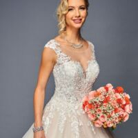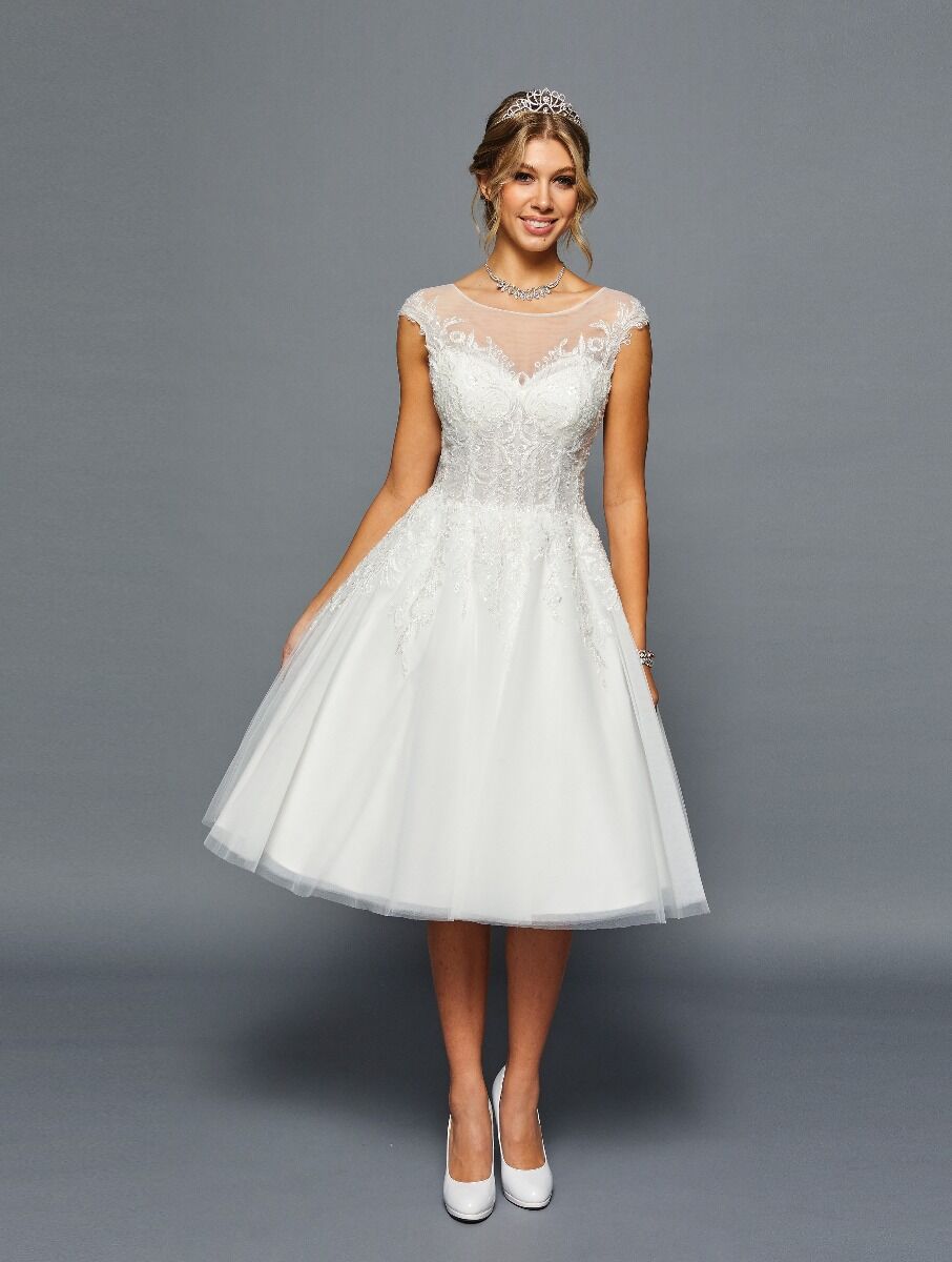 Elegant Boat Neckline Cap Sleeve A-Line Short Wedding Dress with Beaded Lace App