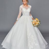 ELEGANT BOAT NECKLINE ILLUSION LONG SLEEVE TRUMPET/MERMAID COURT TRAIN WEDDING DRESS WITH BEADED LACE APPLIQUE