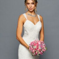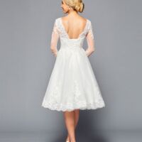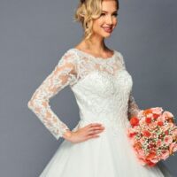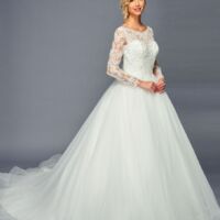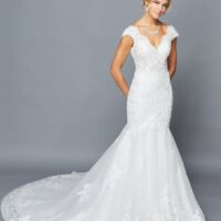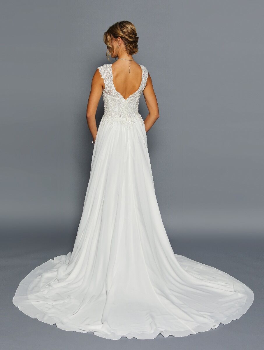 ELEGANT SCOOP NECKLINE CAP SLEEVE CHIFFON A-LINE COURT TRAIN WEDDING DRESS WITH BEADED LACE APPLIQUE.