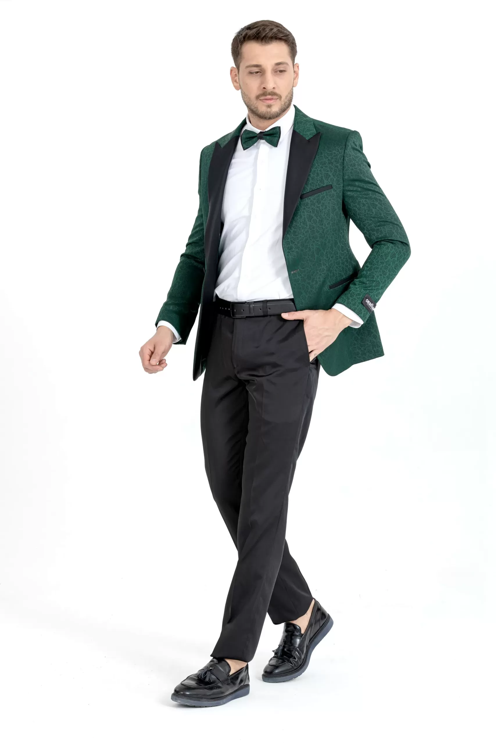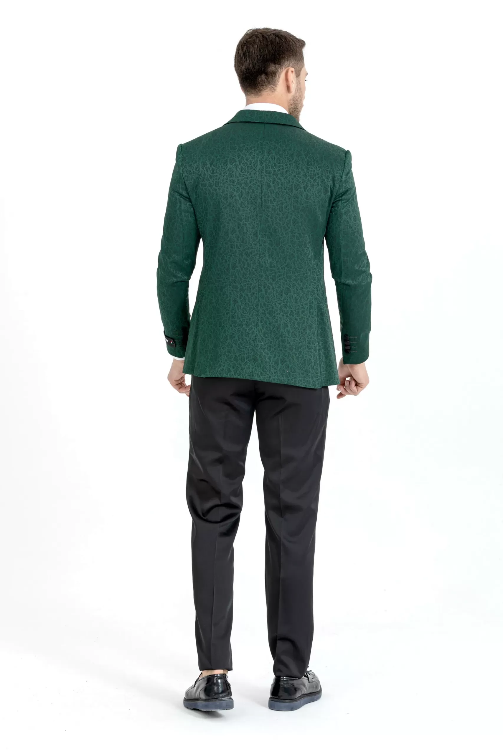 Green Cracked Patterned Textured Tuxedo Two Piece Set
