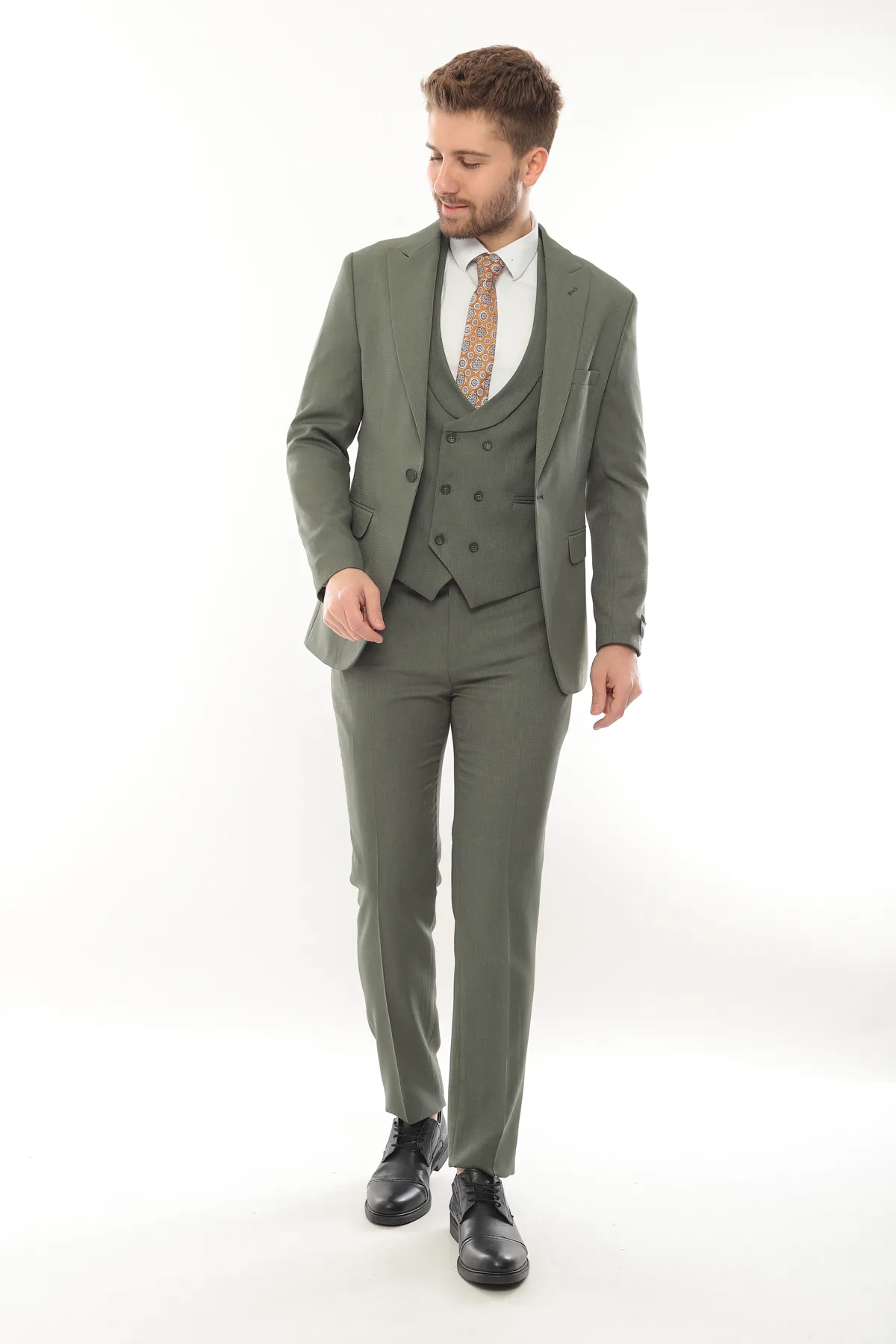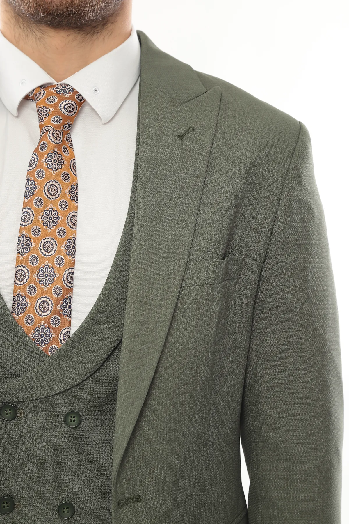 Green Patterned Fabric LuxuryThree Piece Suit