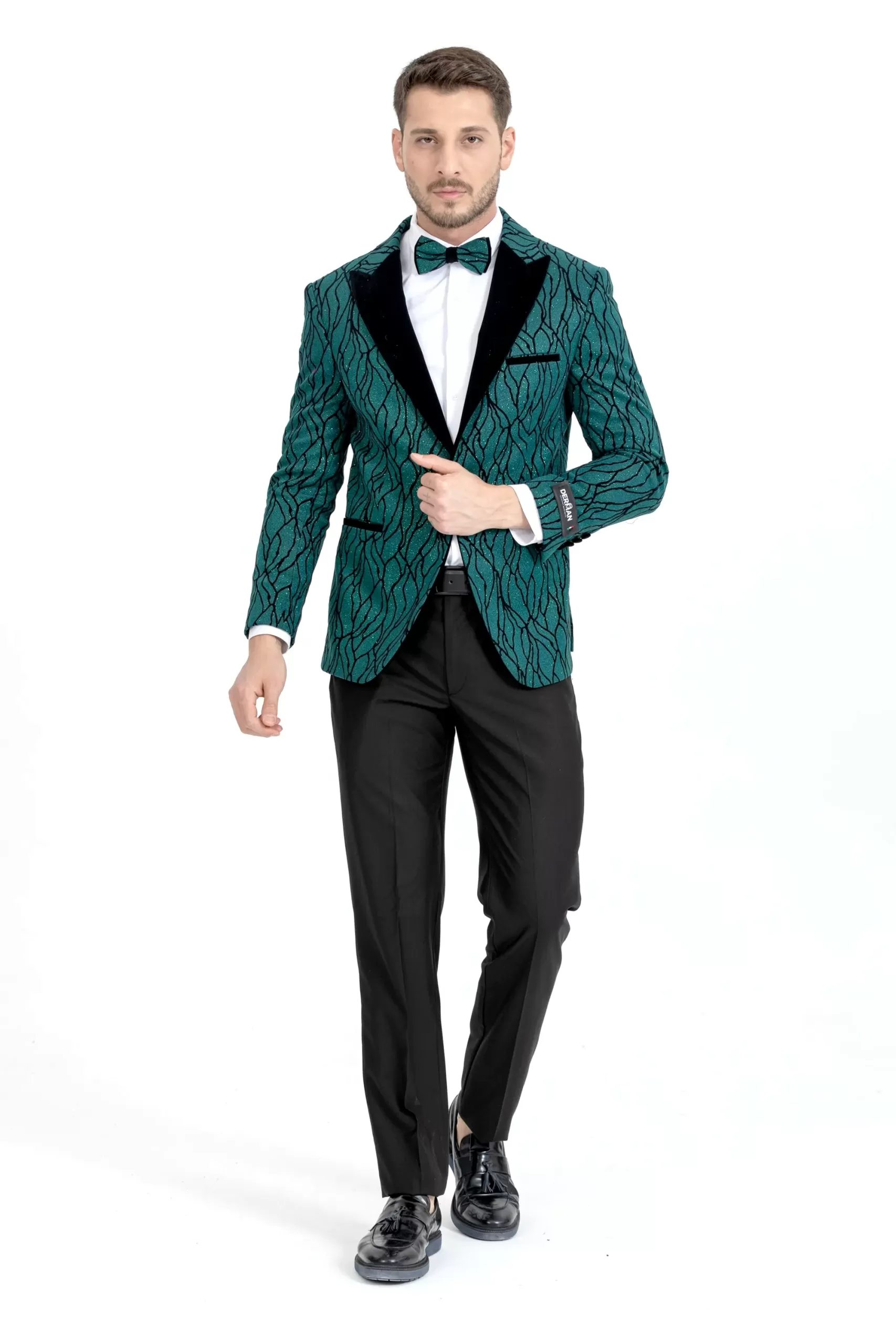 Green Silvery Patterned Fabric Tuxedo Two Piece Set