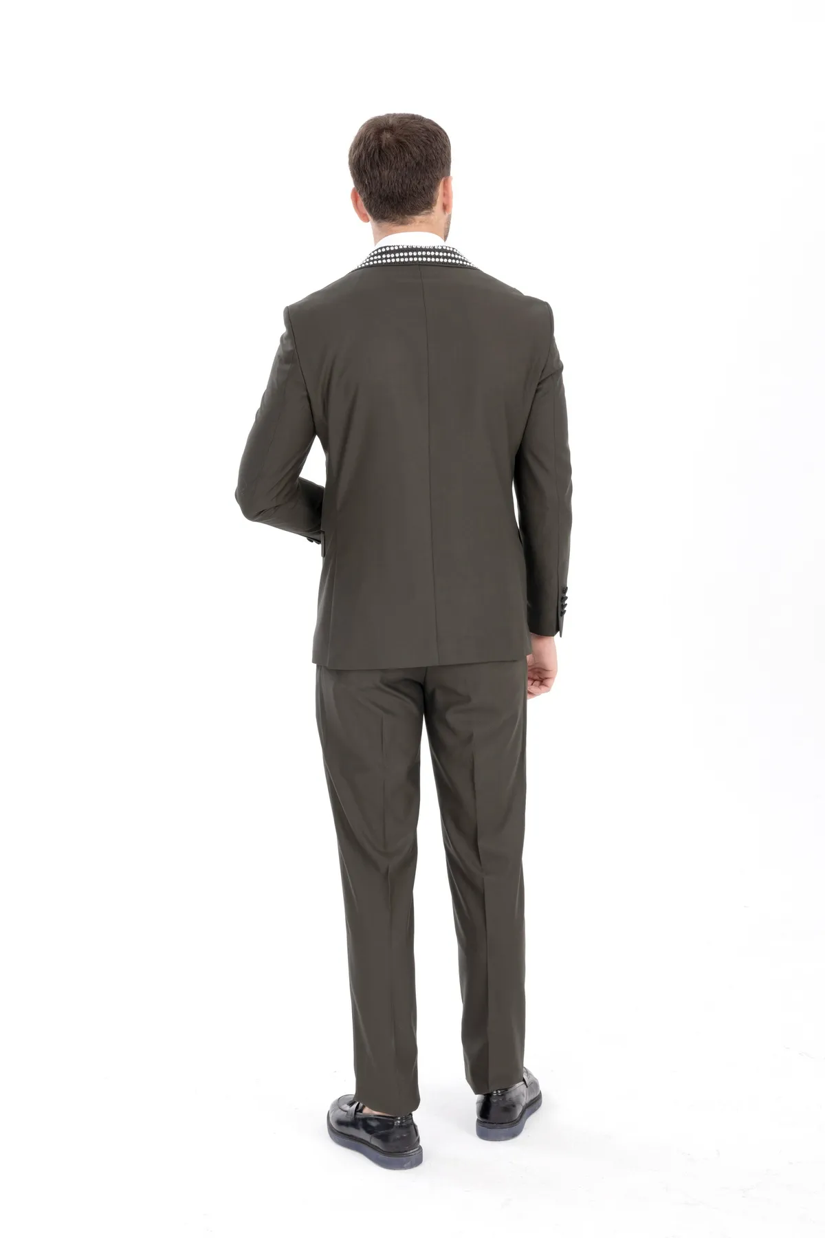 Green Stone Embroidered Collar Tuxedo Two Piece Set