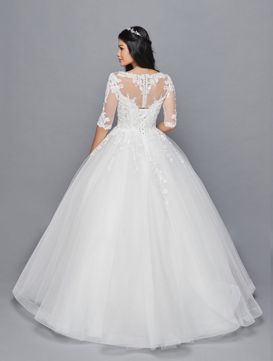 1/2 LENGTH SLEEVE ILLUSION BOAT NECKLINE BEADED LACE AND TULLE BALL GOWN WEDDING DRESS
