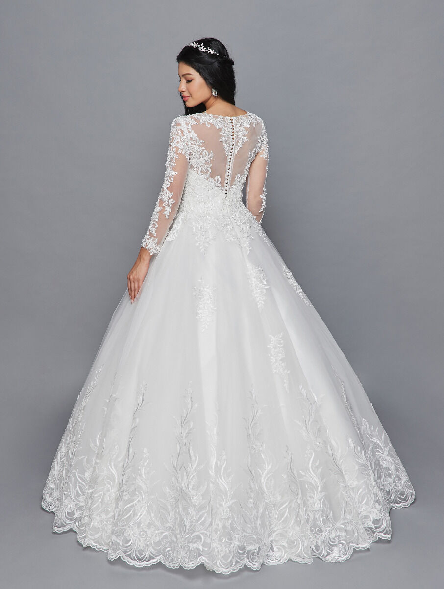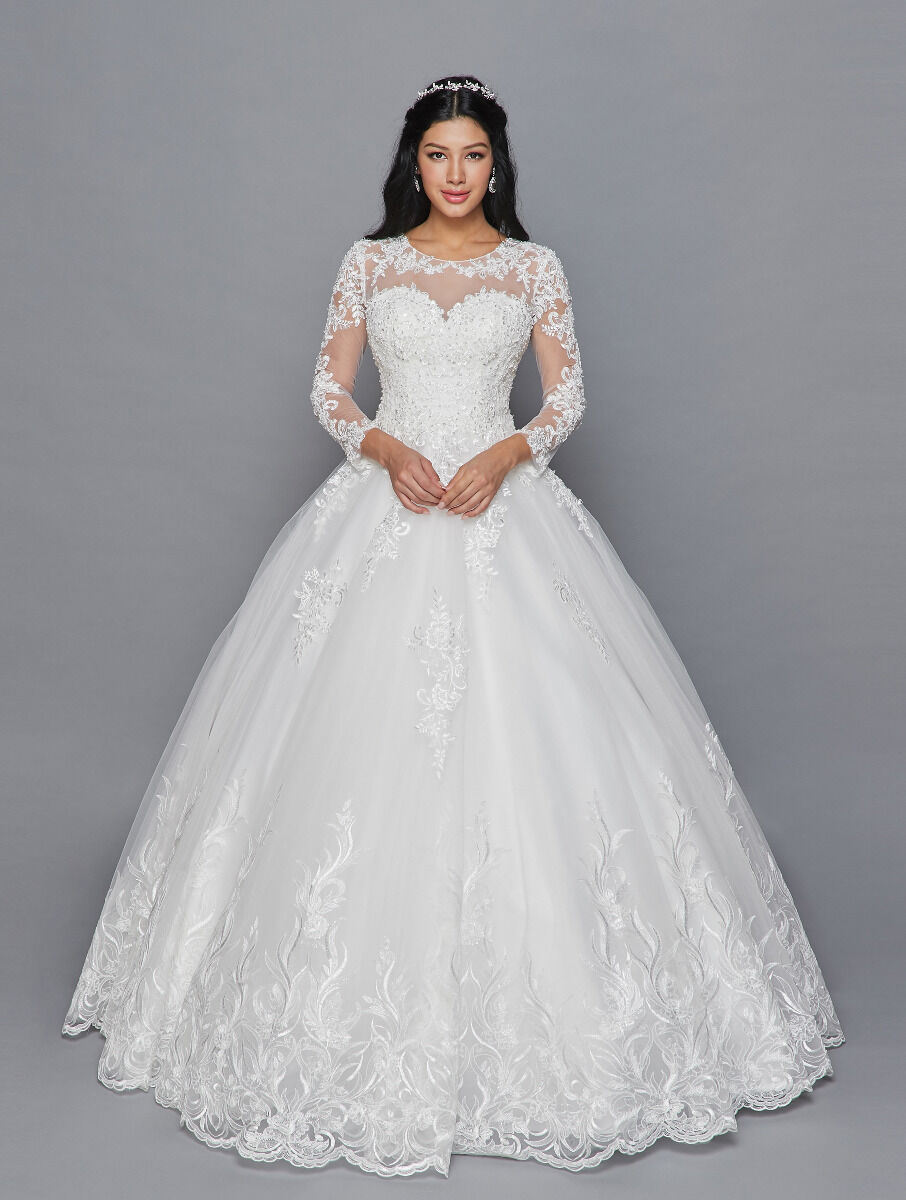 LONG SLEEVE ELEGANT SCOOP NECKLINE LACE AND TULLE BALL GOWN WEDDING DRESS