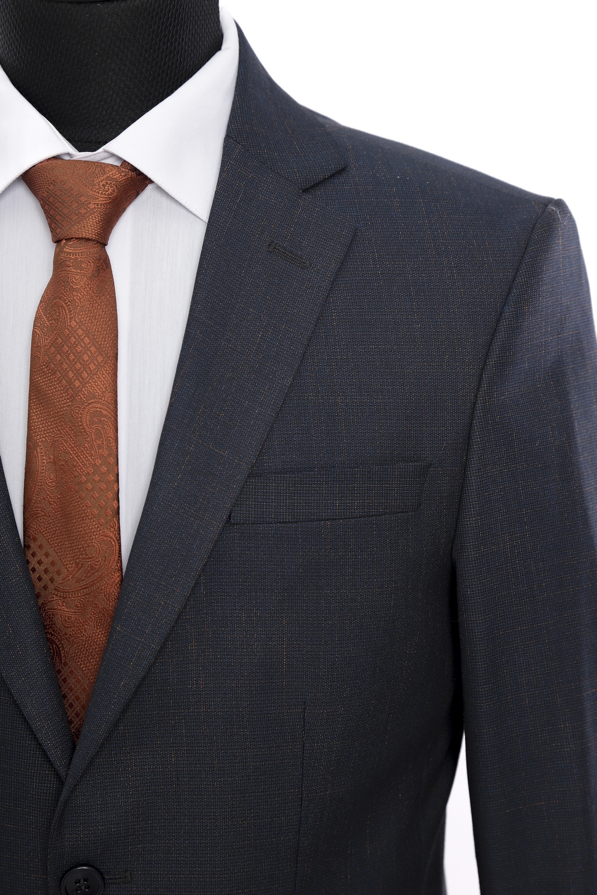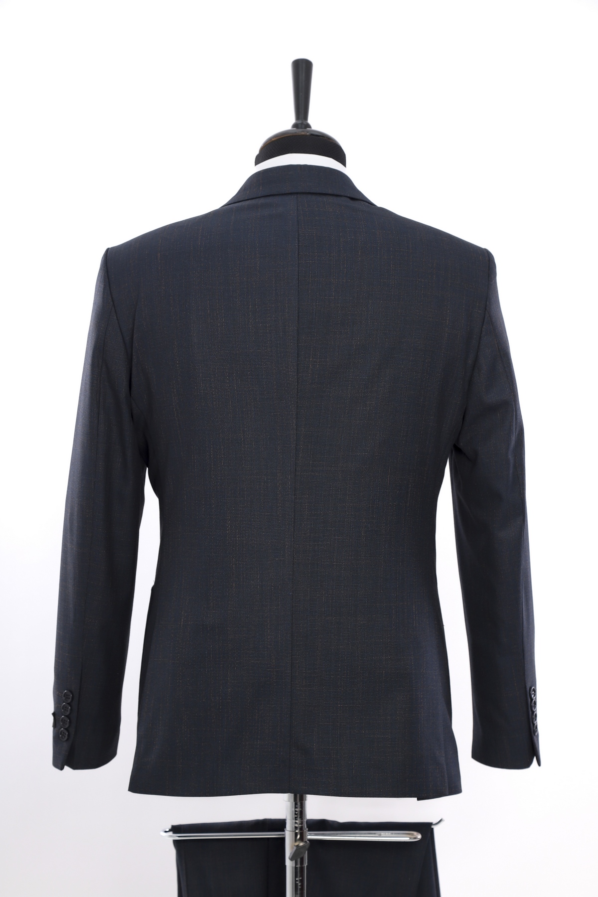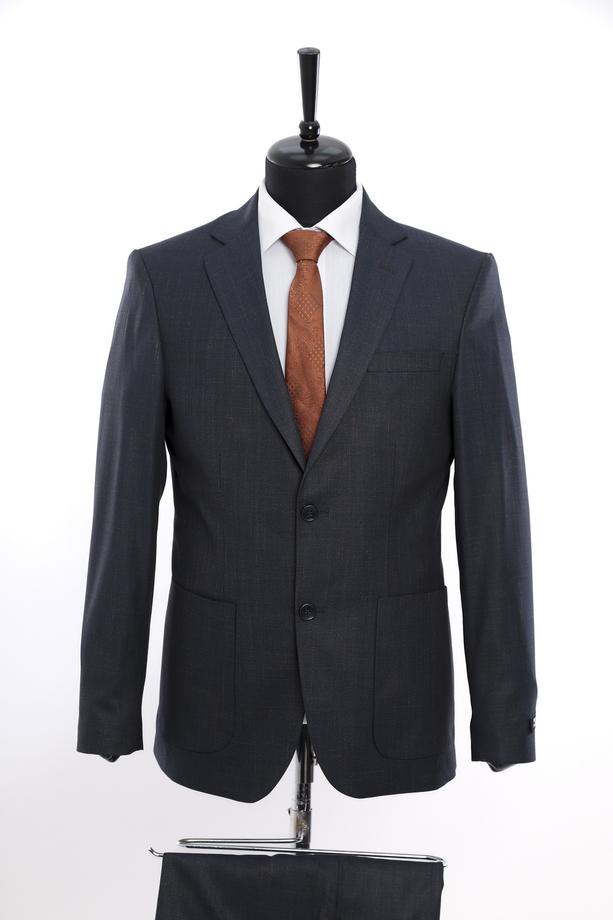 Navy Patterned Wool Fabric Two Piece Classic Suit