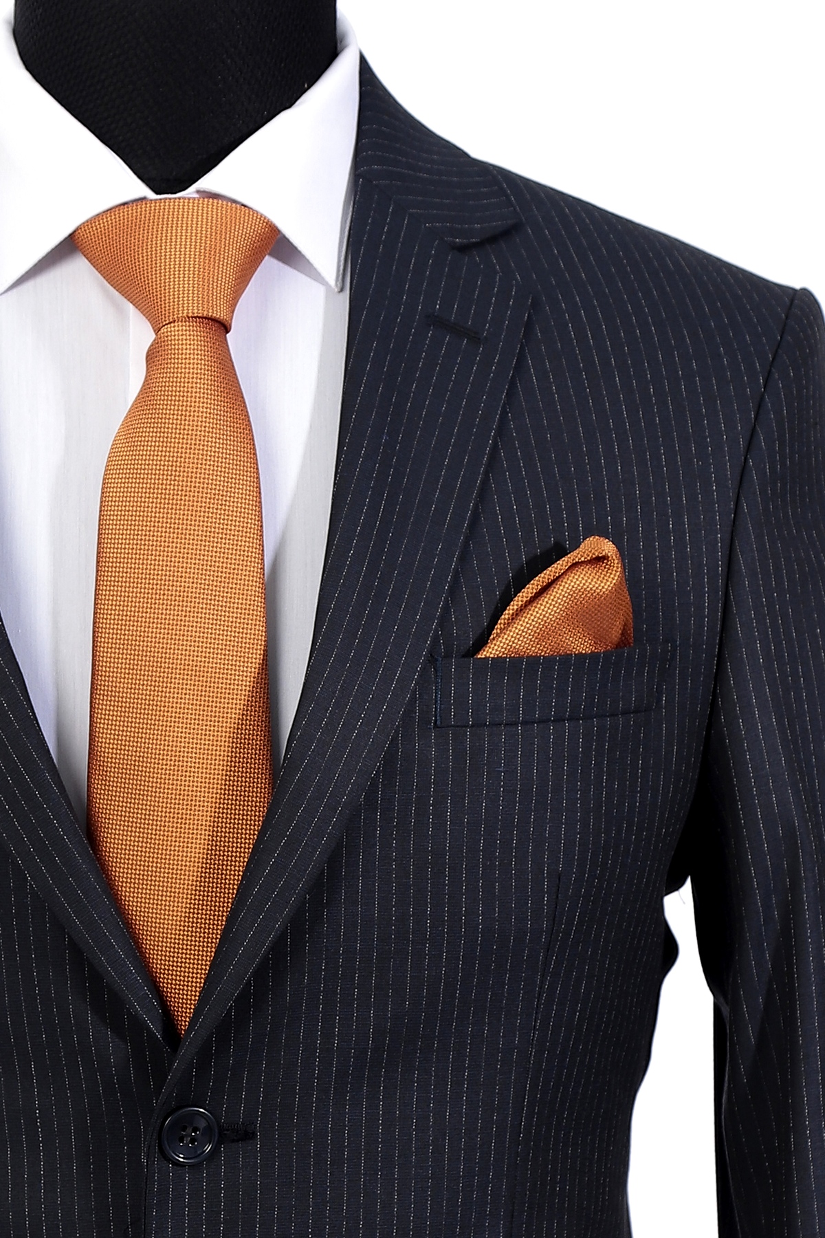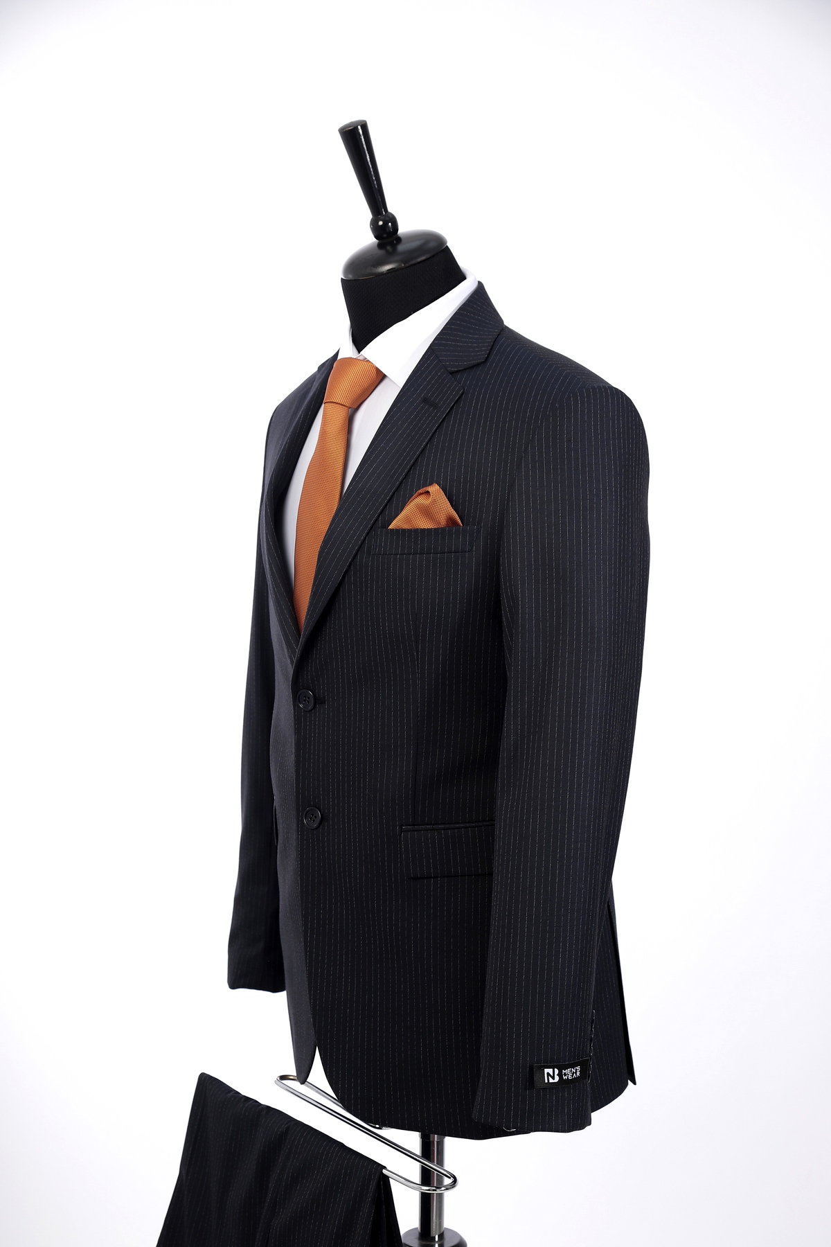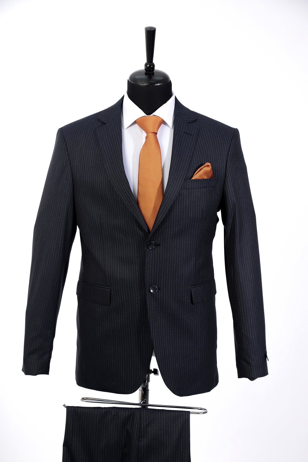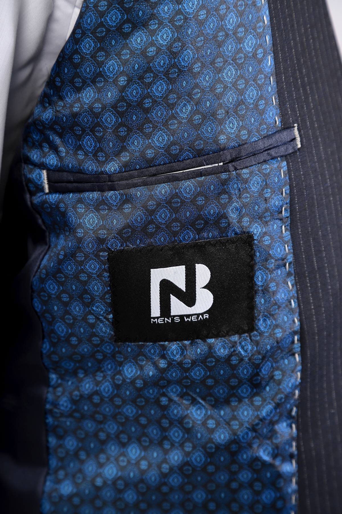 Navy Wool Fabric Two Piece Suit with Silver Line Detail