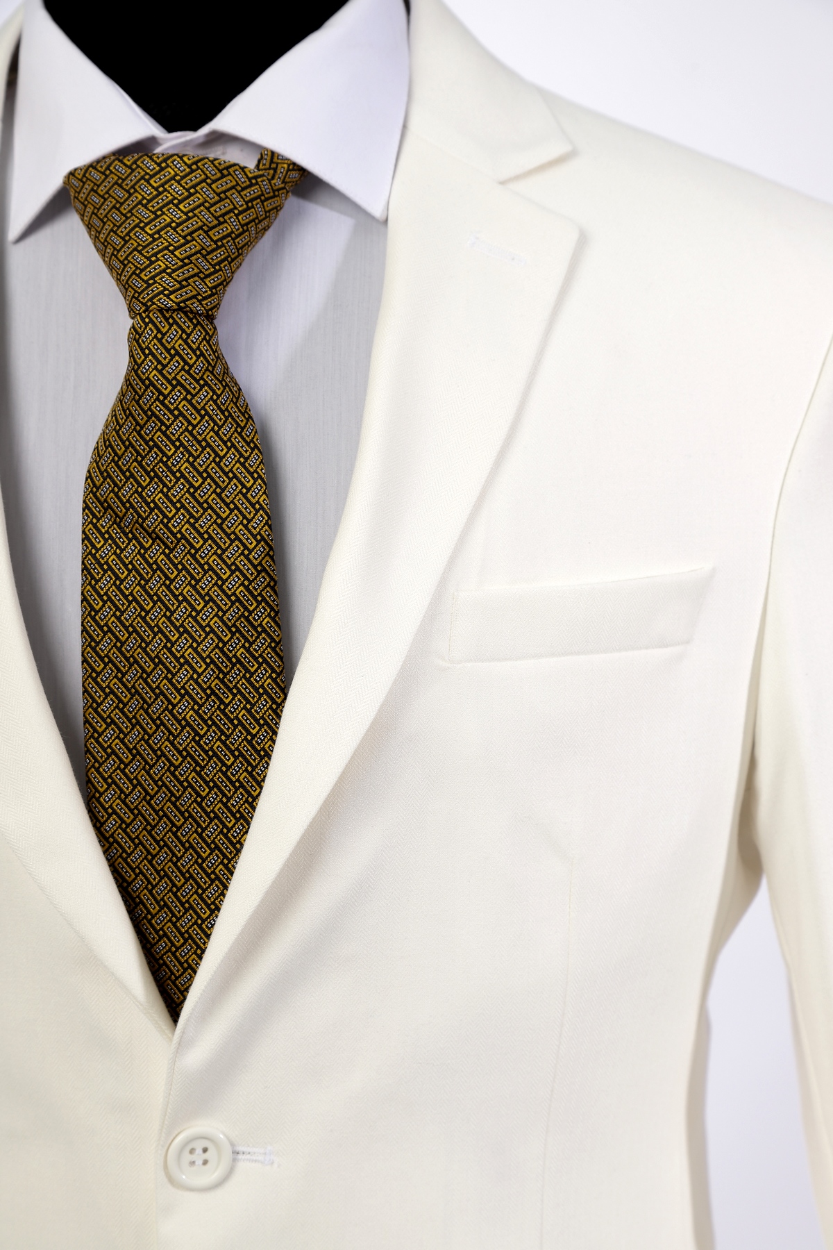 Patterned Premium Wool Fabric Two Piece Set White