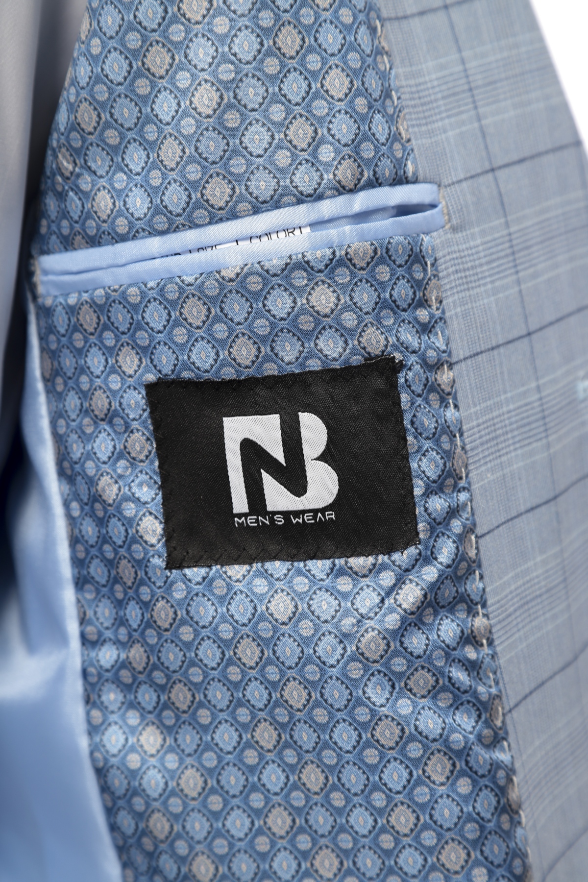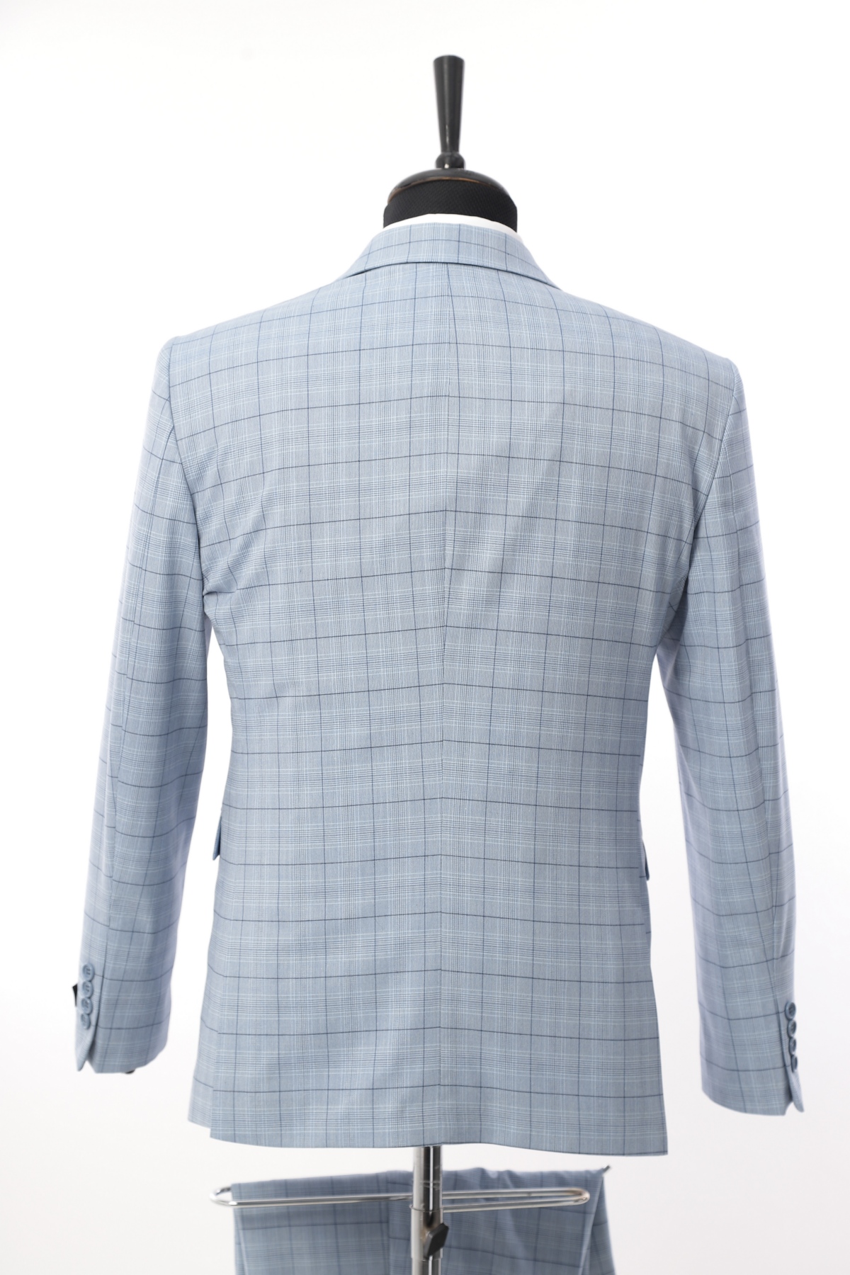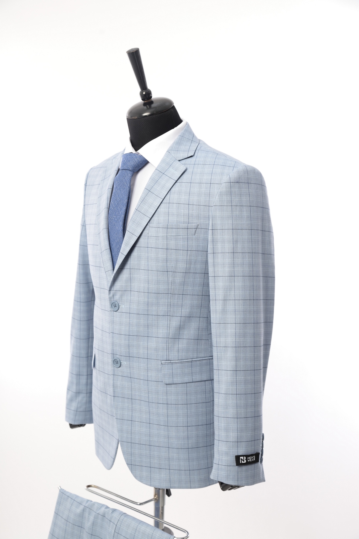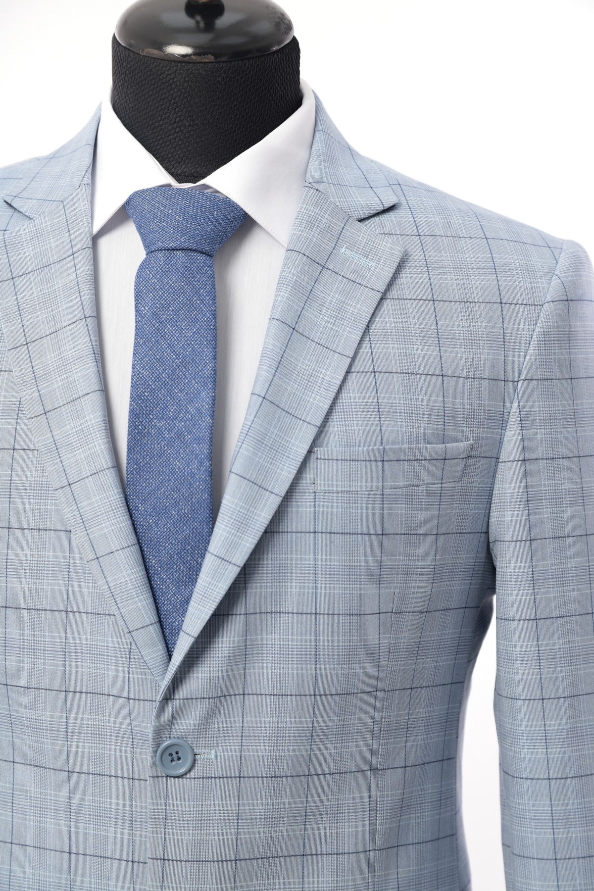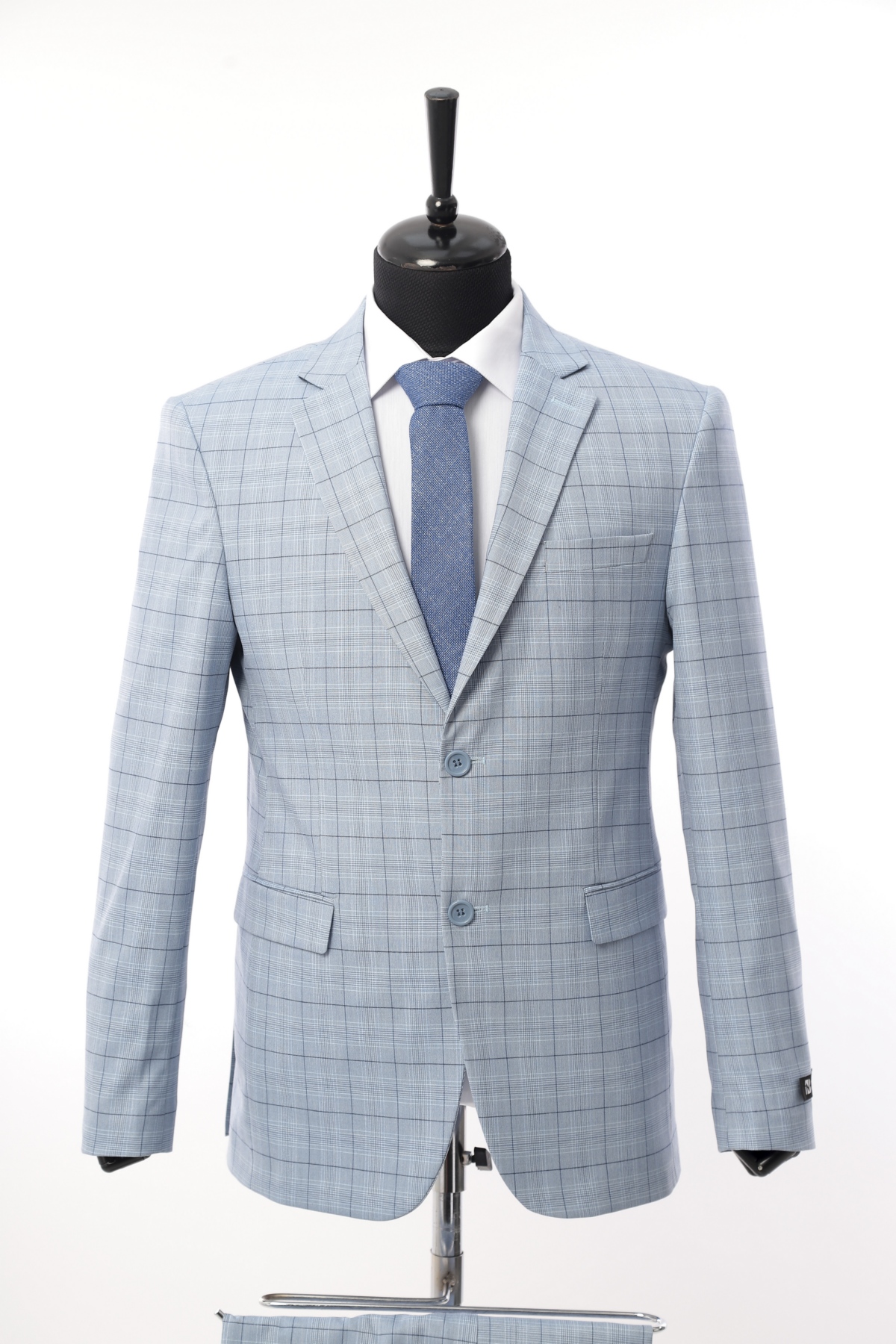 Sky Blue Patterned Wool Fabric Two Piece Suit