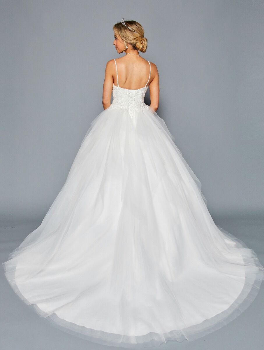 Tulle Spaghetti Straps Ballgown Court Train Wedding Dress with Beaded Lace Appli